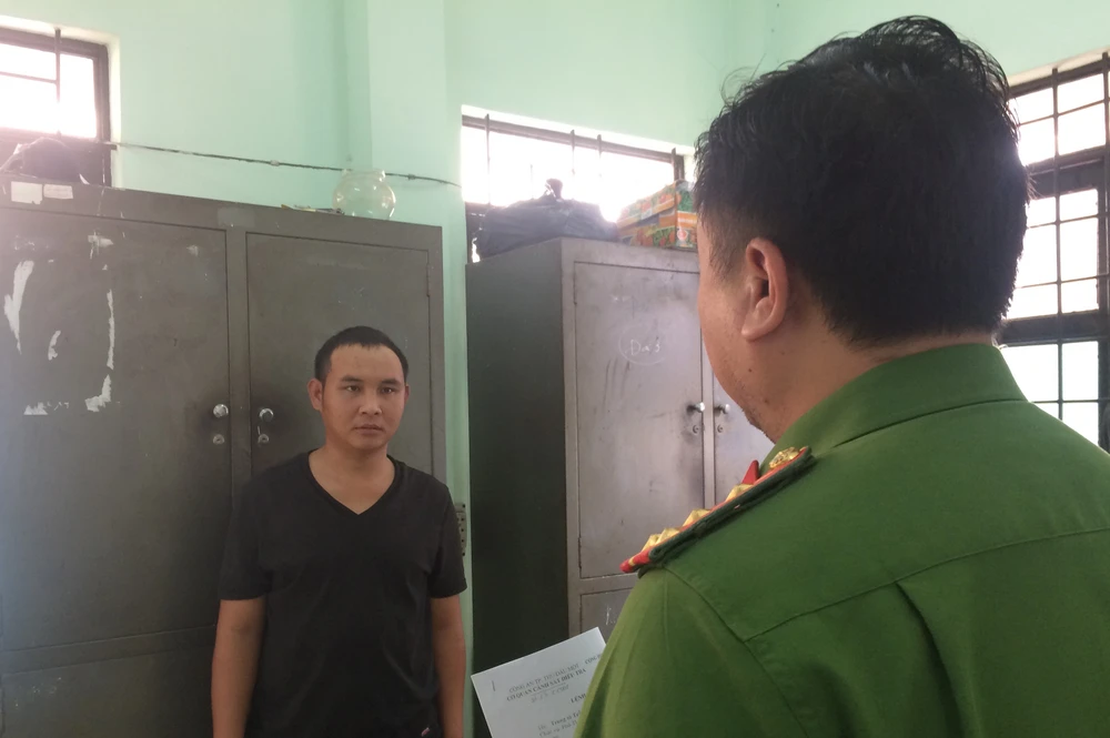 Công an TP Thủ Dầu Một đọc lệnh bắt tạm giam Phan Thanh Tuấn. Ảnh: TQ