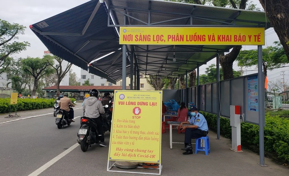 Khu vực khai báo y tế tại cổng BV Phụ sản - Nhi Đà Nẵng. Ảnh: T.AN