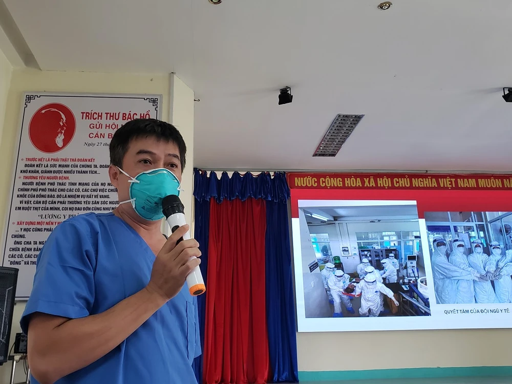 Bác sĩ Trần Thanh Linh (Phó trưởng khoa Hồi sức cấp cứu - Bệnh viện Chợ Rẫy) thông tin về quá trình điều trị cho bệnh nhân 582. Ảnh: T.AN
