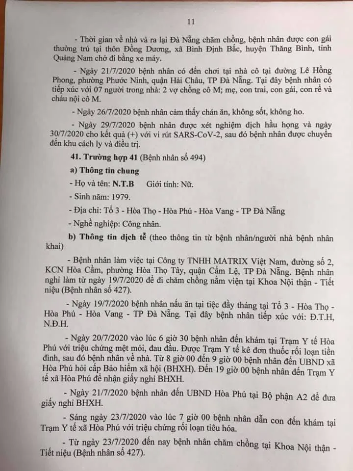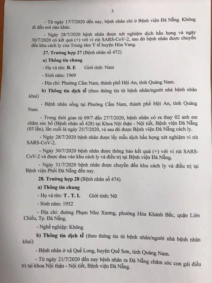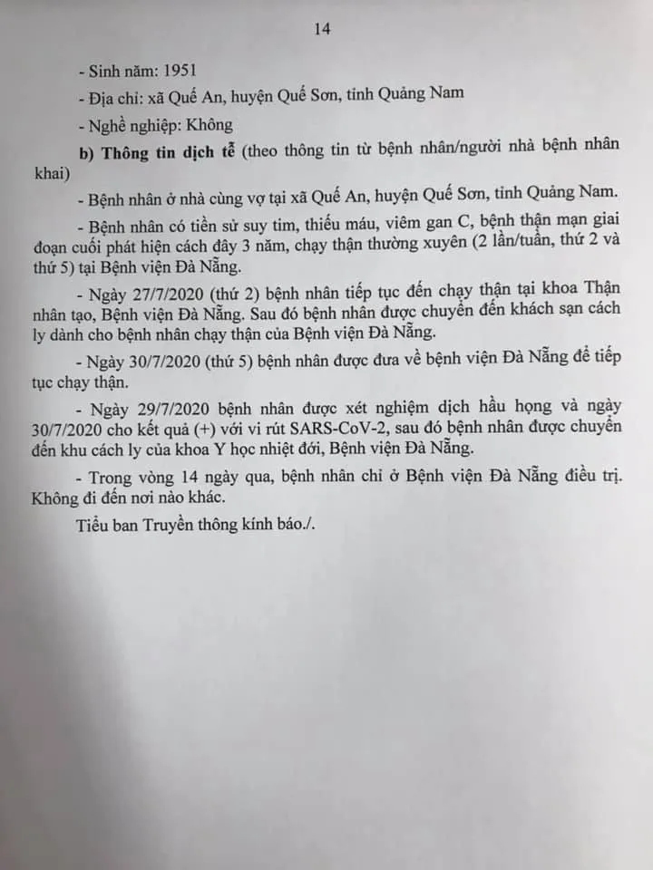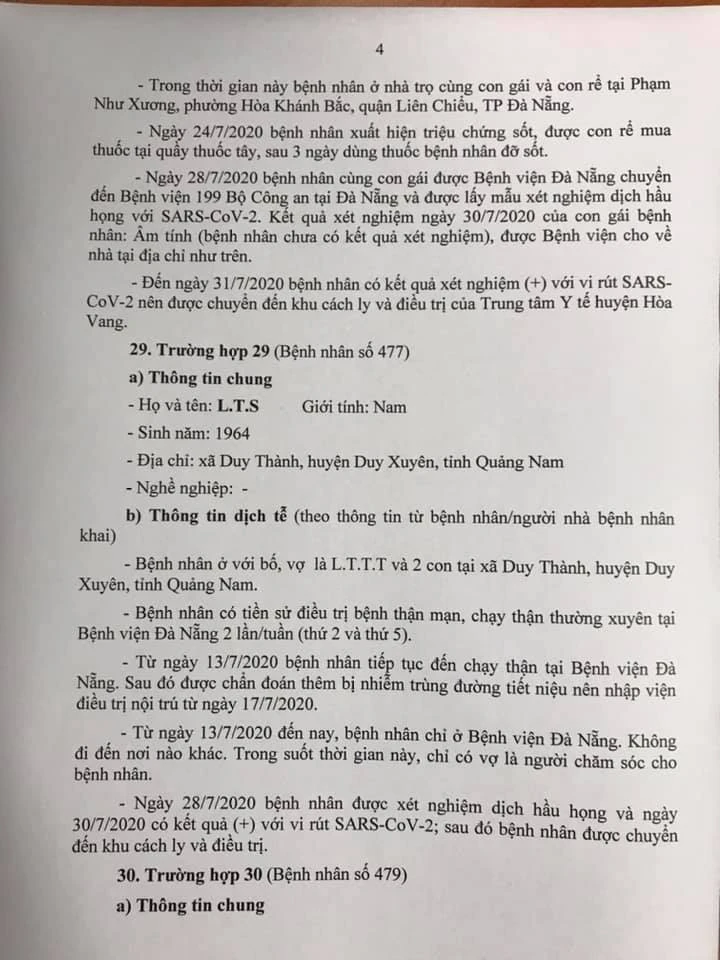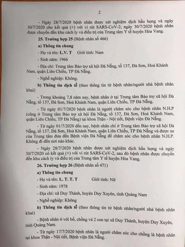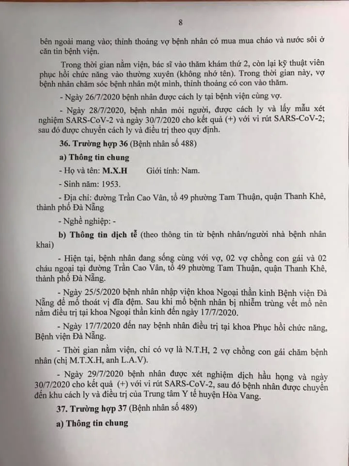 Ngày 28-7, bệnh nhân được xét nghiệm dịch hầu họng và cho kết quả dương tính với virus SARS-CoV-2.