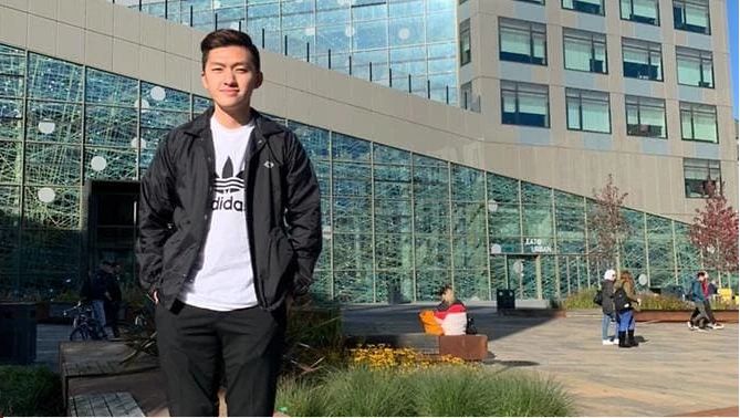 Daviest Ong chụp hình bên ngoài trường Đại học Newcastle ở Anh. Ảnh:DAVIEST ONG/CNA