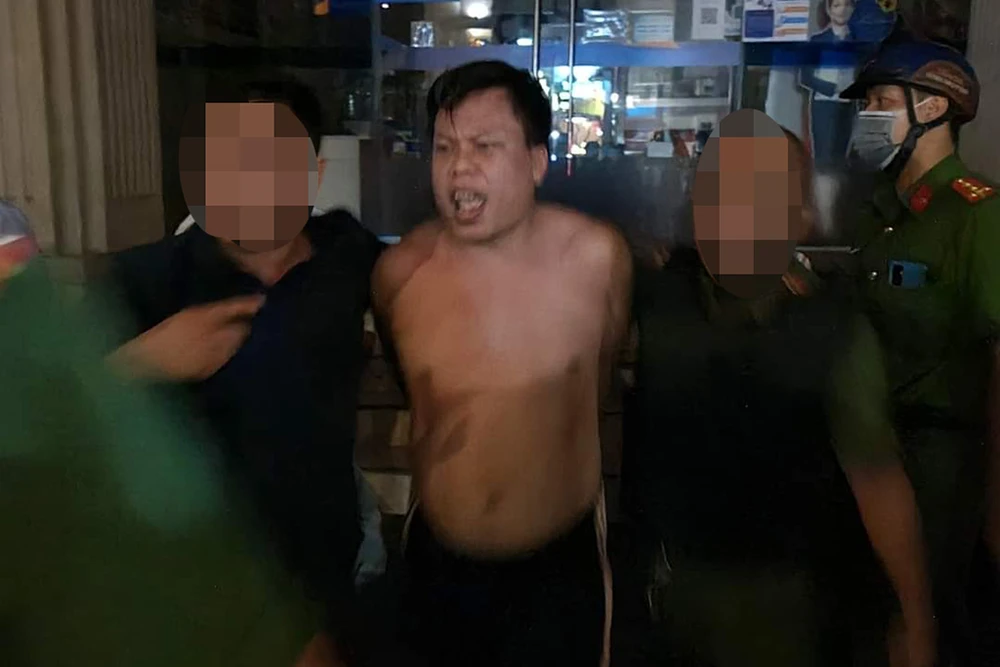 Đạt sau đó bị lực lượng chức năng khống chế. Ảnh: HT
