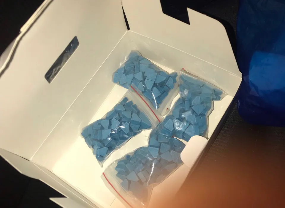 Công an thu giữ của Hoàng Xuân Vũ một hộp giấy trong có bốn túi nylon, mỗi túi chứa 100 viên nén màu xanh qua giám định xác định là thuốc lắc (198,36 g MDMA).