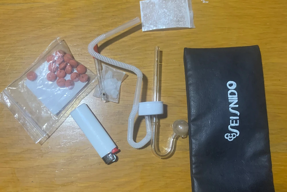 Qua kiểm tra, Tổ công tác phát hiện bên trong túi xách màu đen của người phụ nữ có chứa một gói nylon chứa tinh thể không màu nghi là ma túy, một một bộ dụng cụ dùng để sử dụng ma túy.