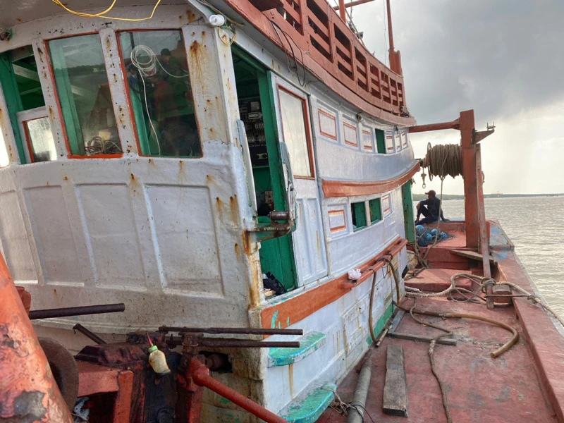 Chiếc tàu cá nơi chủ tàu bị đánh tử vong. Ảnh: T.M
