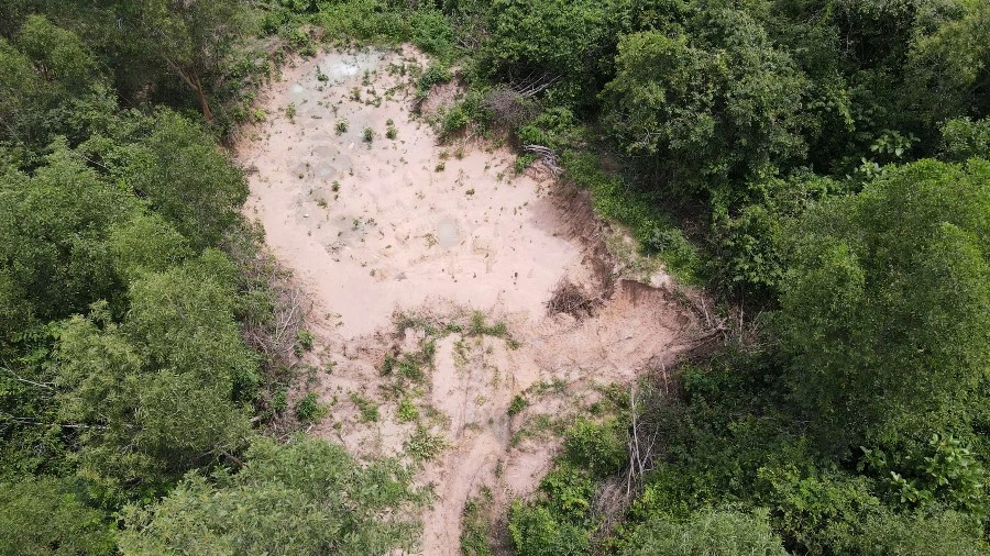 Sau đó, anh T tự đi vào hiện trường kiểm tra phát hiện một xe cuốc đang đậu ở vị trí thửa đất (đất nông nghiệp) đã lấy cát đi, còn lại xe cuốc, không thấy người. Anh T dùng điện thoại để chụp lại toàn bộ hình ảnh khu vực khai thác và gửi hình ảnh cho lãnh đạo xã Long Sơn. Lãnh đạo xã yêu cầu anh T chiều cùng ngày tiến hành kiểm tra xử lý khu vực đã bị khai thác có dấu hiệu trái phép trên...