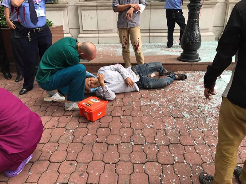 Một số nhân chứng cho biết nạn nhân đang đứng trên dàn giáo thì không may trượt chân ngã, rơi xuống nền bê tông, trọng thương. Nam công nhân sau đó được đưa đến bệnh viện cấp cứu.