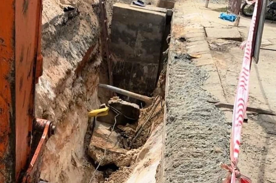 Hiện trường nơi ông L. bị khối bê tông đè tử vong. Ảnh: Nhật Thanh