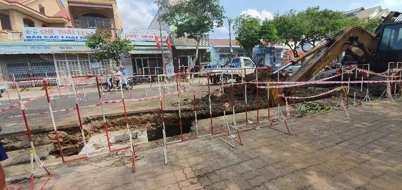 Khoảng 8 giờ 20 phút sáng nay (12-5), tại TP Bà Rịa, tỉnh Bà Rịa-Vũng Tàu, một nhóm công nhân tiến hành đào đường, đặt cống thoát nước.