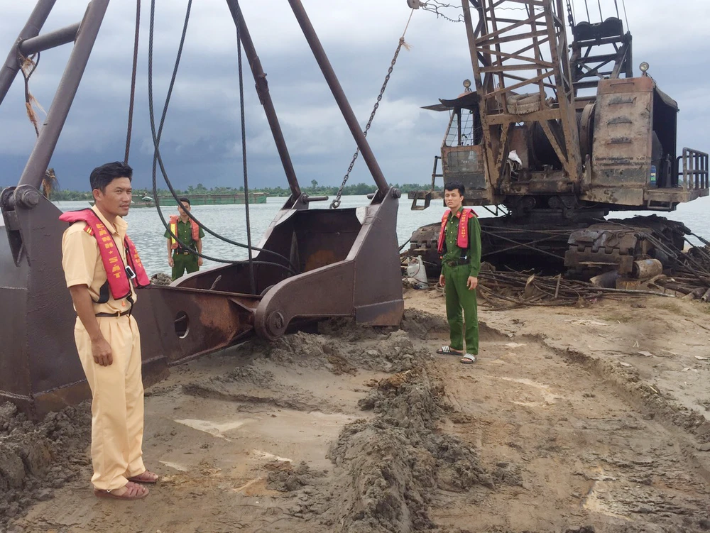 Phương tiện khai thác cát trái phép bị bắt giữ. Ảnh: HẢI DƯƠNG