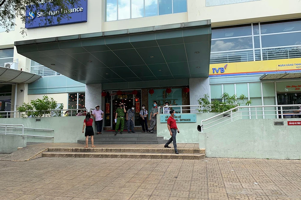 Ngày 16-2, Công an quận 5, TP.HCM khám nghiệm hiện trường, điều tra vụ việc cụ bà rơi lầu cao Chung cư Tản Đà Court Apartment (số 86 Tản Đà, phường 11, quận 5), tử vong.