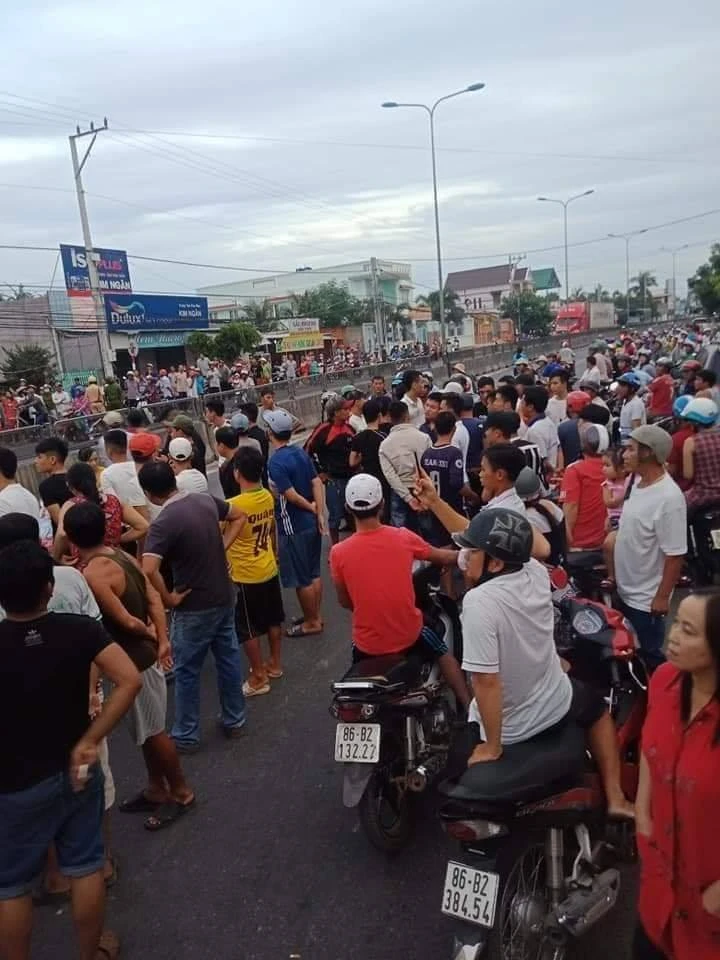 Người đi đường tò mò tập trung theo dõi vụ việc.