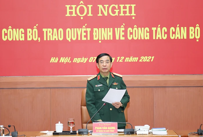 Bộ Quốc phòng vừa tổ chức Hội nghị Công bố, trao quyết định về công tác cán bộ. Đại tướng Phan Văn Giang, Ủy viên Bộ Chính trị, Phó Bí thư Quân ủy Trung ương, Bộ trưởng Bộ Quốc phòng chủ trì hội nghị.