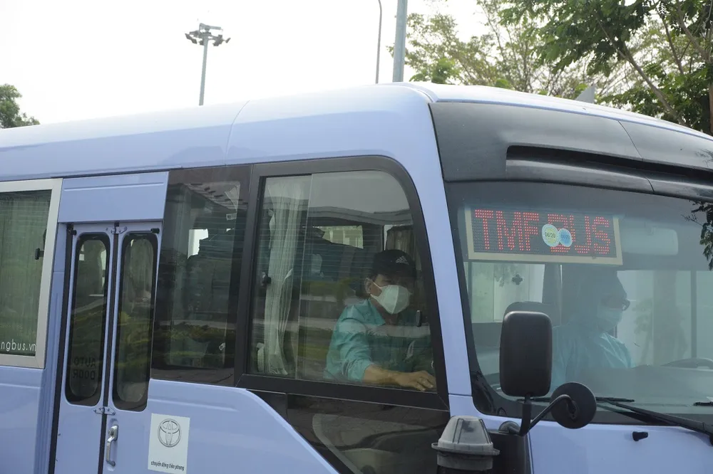 Cơ quan chức năng đưa hành khách trên chuyến bay từ các nước ASEAN về nơi cách ly theo quy định. Ảnh: TA