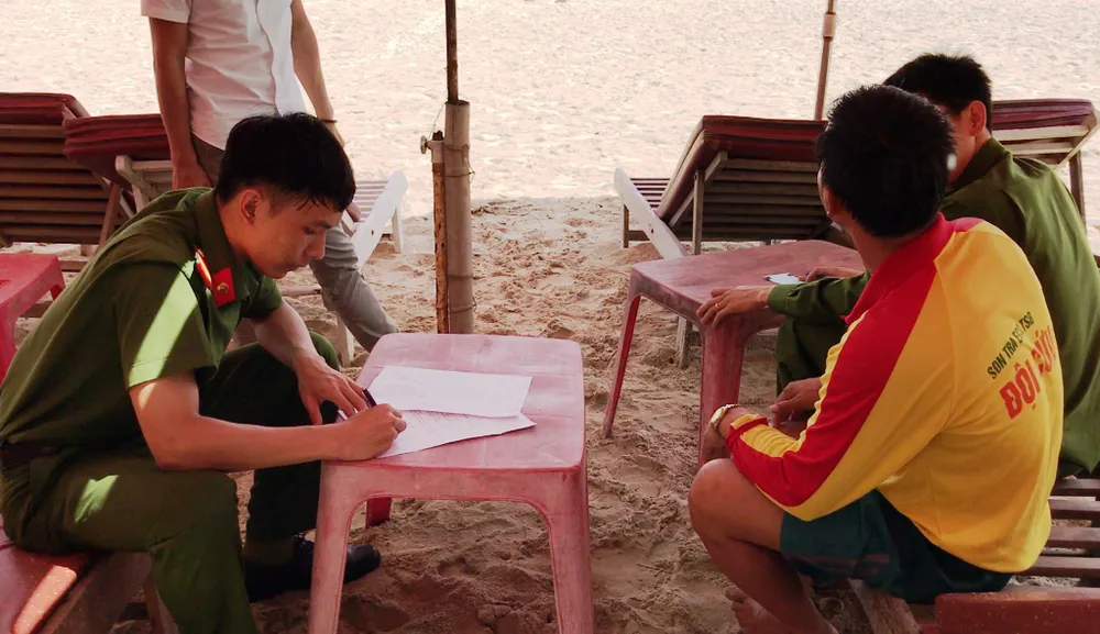 Trưa 19-10, Phòng Kỹ thuật hình sự Công an TP Đà Nẵng phối hợp cùng Viện kiểm sát, Công an quận Ngũ Hành Sơn khám nghiệm hiện trường, tử thi để làm rõ nguyên nhân tử vong của nam du khách người Trung Quốc tại bãi biển Mỹ Khê.
