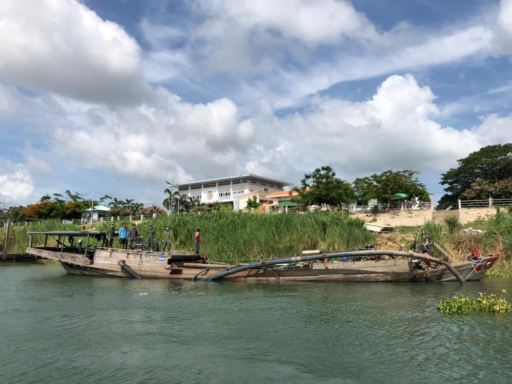 Đồn biên phòng cửa khẩu quốc tế Vĩnh Xương, Bộ đội biên phòng An Giang vừa bắt quả tang một ghe gỗ khai thác cát sông trái phép ở khu vực biên giới.