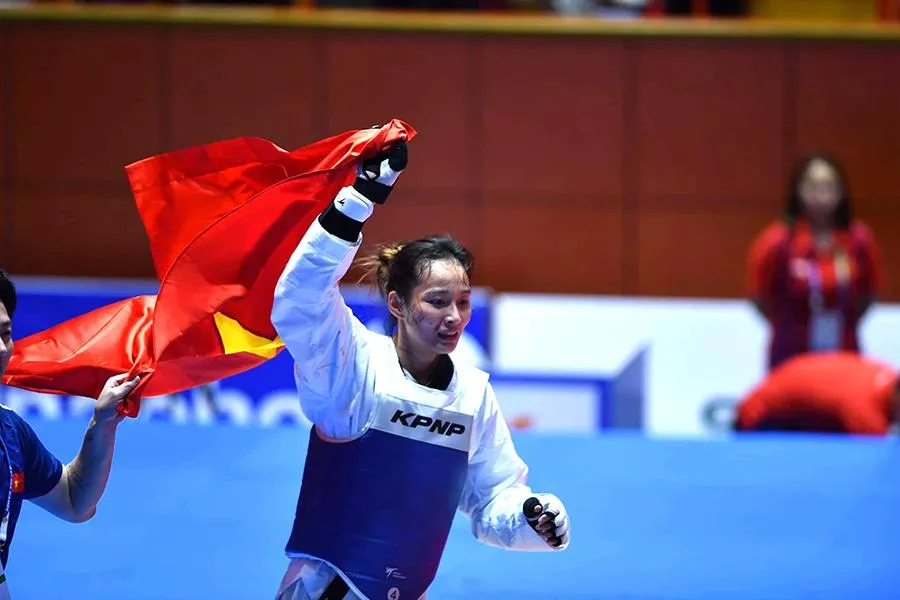 VĐV Nguyễn Thị Hương giành HCV SEA Games 31 môn Taekwondo hạng 73 kg sau khi đánh bại vận động viên người Philippines để mang vinh quang về cho Tổ quốc và gia đình. Ảnh: NVCC |