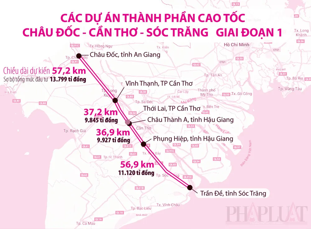Danh mục các dự án thành phần cao tốc Châu Đốc - Cần Thơ - Sóc Trăng,