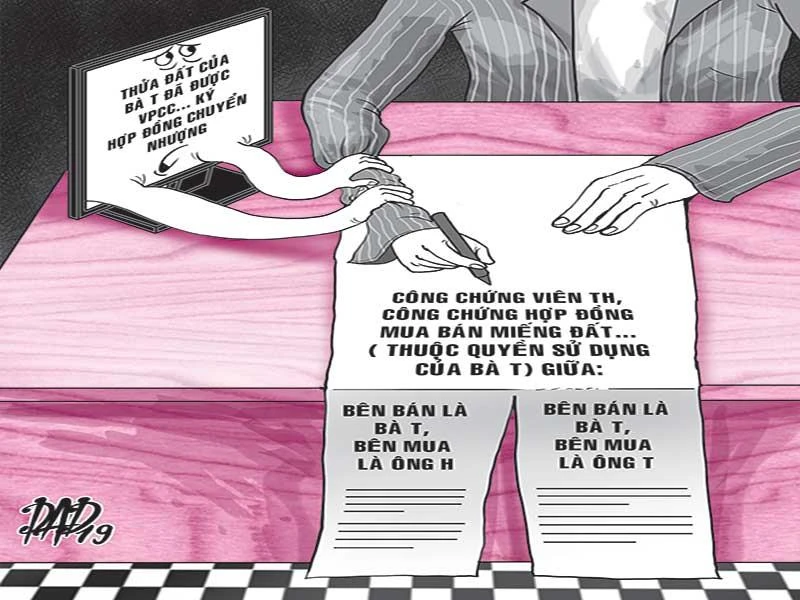 Bốn tháng sau, không thấy bà T. trả giấy đỏ và tiền thuê nhà nên ông H. tìm gặp thì phát hiện bà T. đã bỏ đi đâu không rõ. Ông H. thấy lo lắng nên đến VPCC Củ Chi tìm hiểu thì phát hiện bà T. đã mang miếng đất đã bán cho ông để bán tiếp cho người khác với giá 100 triệu đồng. Hợp đồng chuyển nhượng này được công chứng viên Trần Thị Thảo VPCC Tân Quy (nay là VPCC Hồ Nhật Tú Trinh) ký công chứng ngày 16-6-2017.