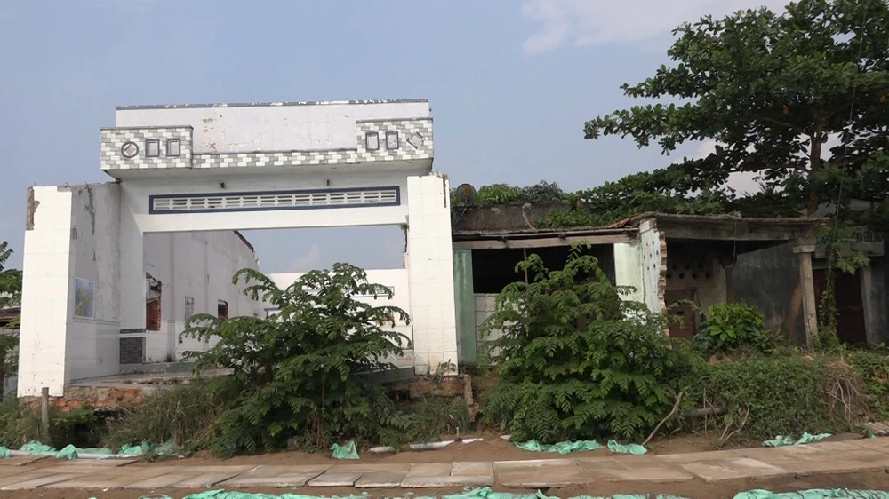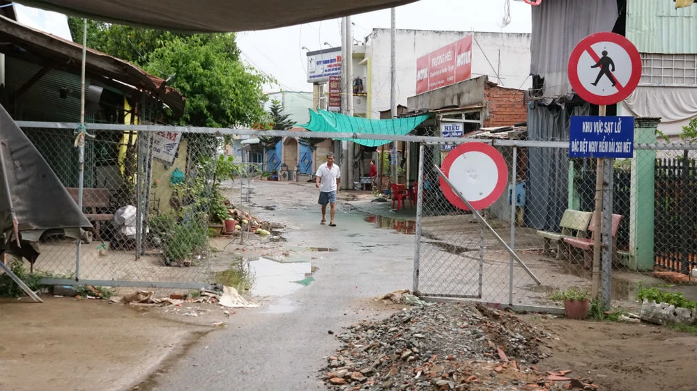 Hiện tại khu vực sạt lở, biển cảnh báo sạt lở vẫn còn được dựng y nguyên. Phía trong là khung cảnh hoang tàn, vắng lặng. Nhiều căn nhà chỉ còn trơ khung, những căn nhà kiên cố tiền tỉ vẫn phải bỏ không.