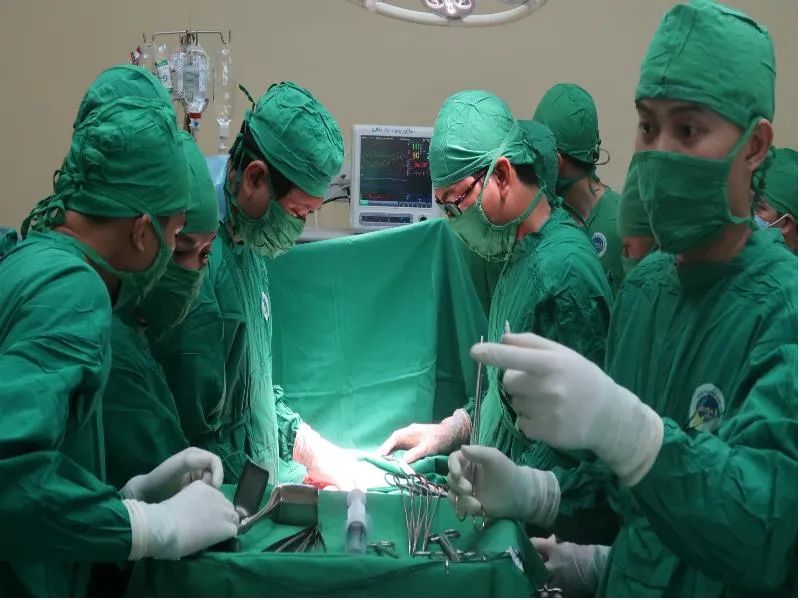 Đội ngũ y tế đang phẫu thuật cho anh Dũng