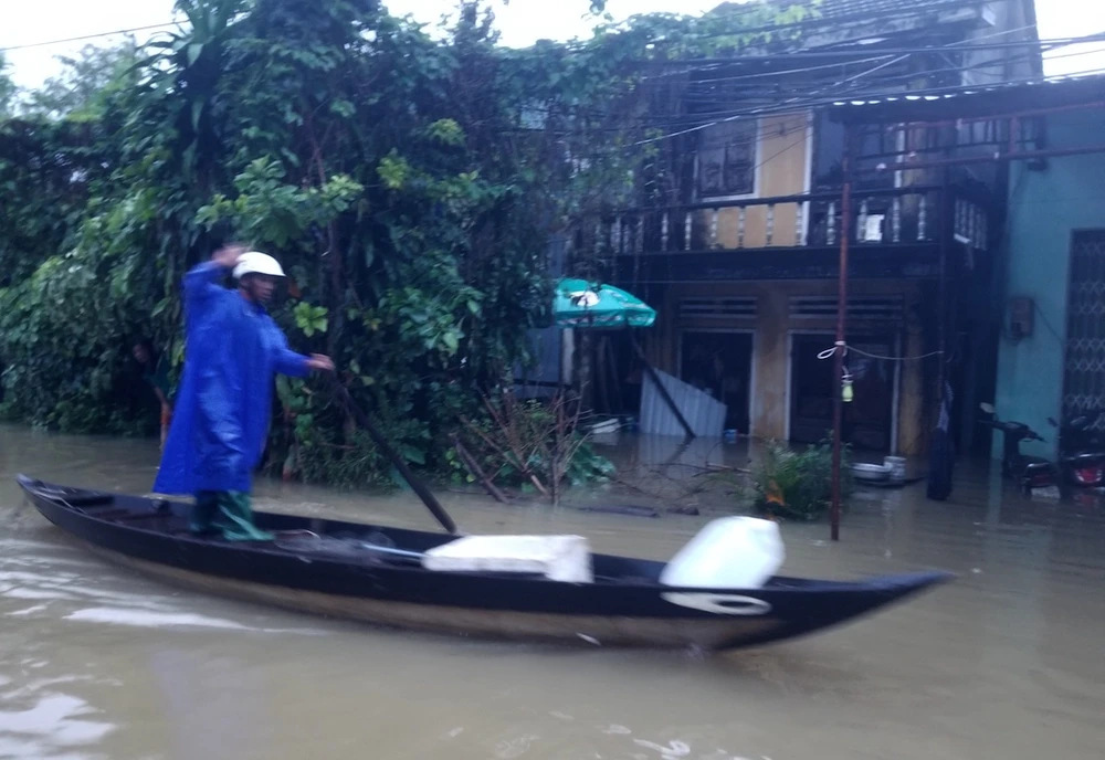 Trong khi đó, tại TP Tam Kỳ trong sáng nay do trận mưa kéo dài nên cả TP chìm trong nước, nhiều tuyến đường bị cô lập và người dân phải đi lại bằng thuyền.