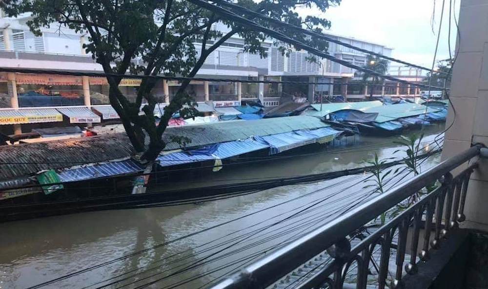 Chợ Tam Kỳ chìm sâu trong nước lũ. Ảnh: THANH NHẬT