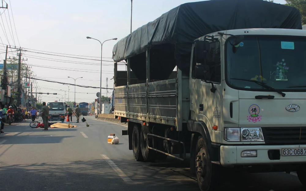 Cùng lúc này, xe tải biển số 63C-068.73 chạy tới cán qua người khiến ông Phước tử vong tại chỗ.