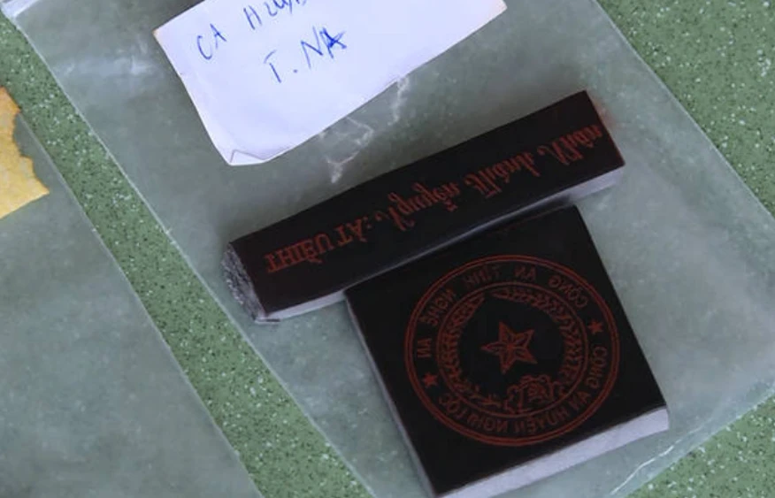 Tang vật con dấu giả của cơ quan công an. Ảnh: NTV
