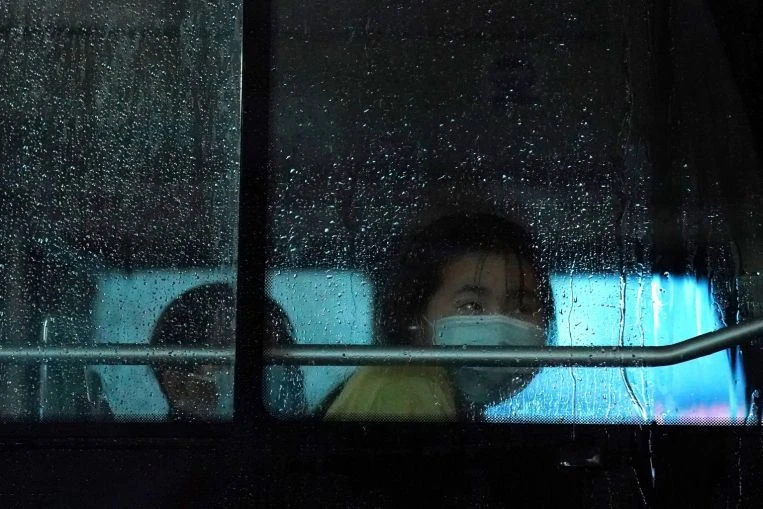 Một nữ hành khách Trung Quốc đeo khẩu trang khi ngồi trên xe buýt. Ảnh: STAIRS TIMES