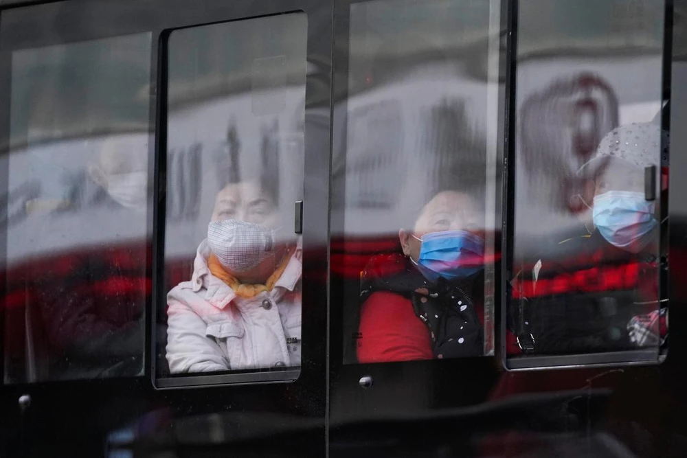 Người dân Trung Quốc đeo khẩu trang khi ngồi trên xe buýt sau khi nạn dịch COVID-19 bùng phát. Ảnh: REUTERS