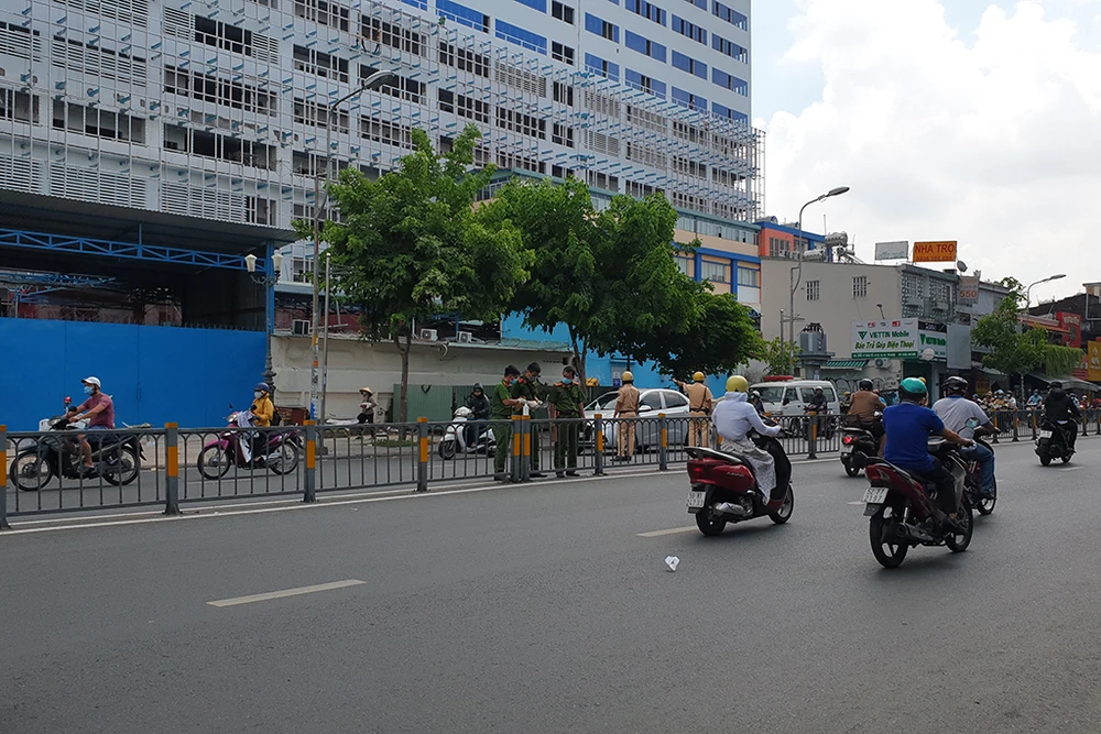 Công an khám nghiệm hiện trường, điều tra làm rõ vụ án mạng gần cổng Bệnh viện Nhi Đồng 1. Ảnh NT