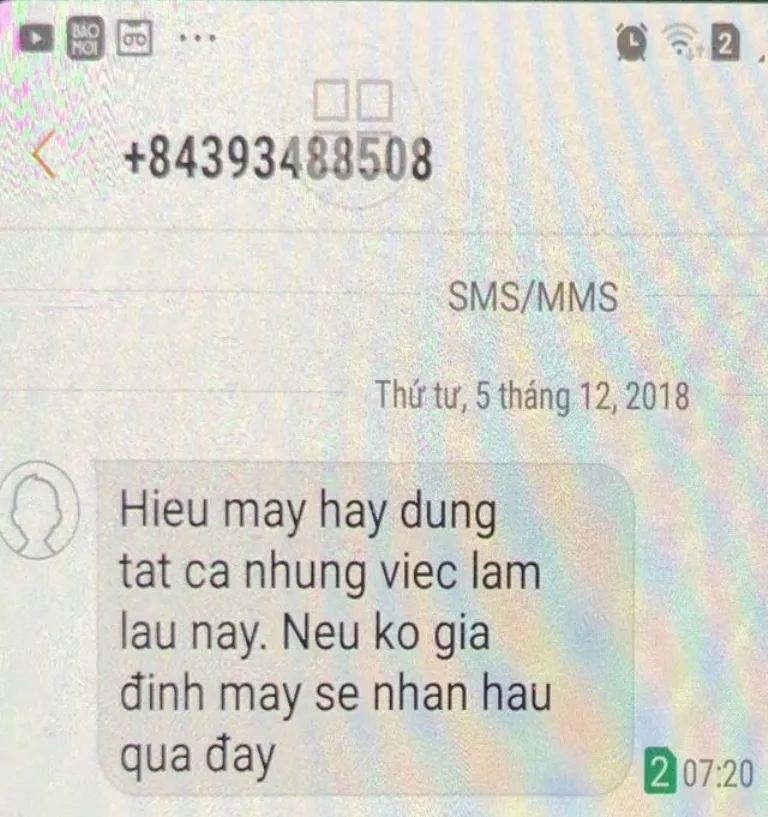 Theo ông Hiếu, sáng 5-12, khi chuẩn bị vào dự một cuộc họp tại Huyện ủy Nghĩa Hành, điện thoại của ông bất ngờ nhận được tin nhắn với nội dung: “Hieu may hay dung tat ca nhung viec lam lau nay. Neu ko gia đinh may se nhan hau qua đay”(Hiếu mày hãy dừng tất cả những việc làm lâu nay. Nếu không gia đình mày sẽ nhận hậu quả đấy).