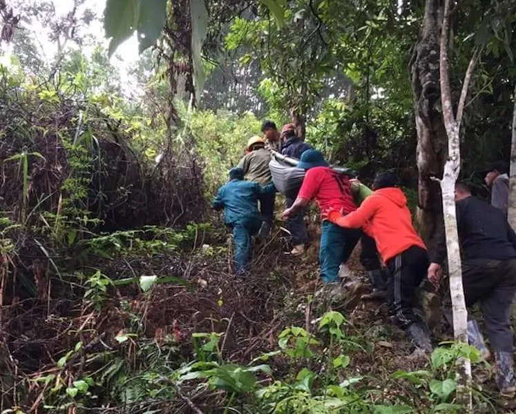 Nhận thông tin, xã Phước Thành cử lực lượng dân quân cùng người dân khiêng bộ hơn 4 tiếng, vượt 20 km đường rừng ra ngoài.