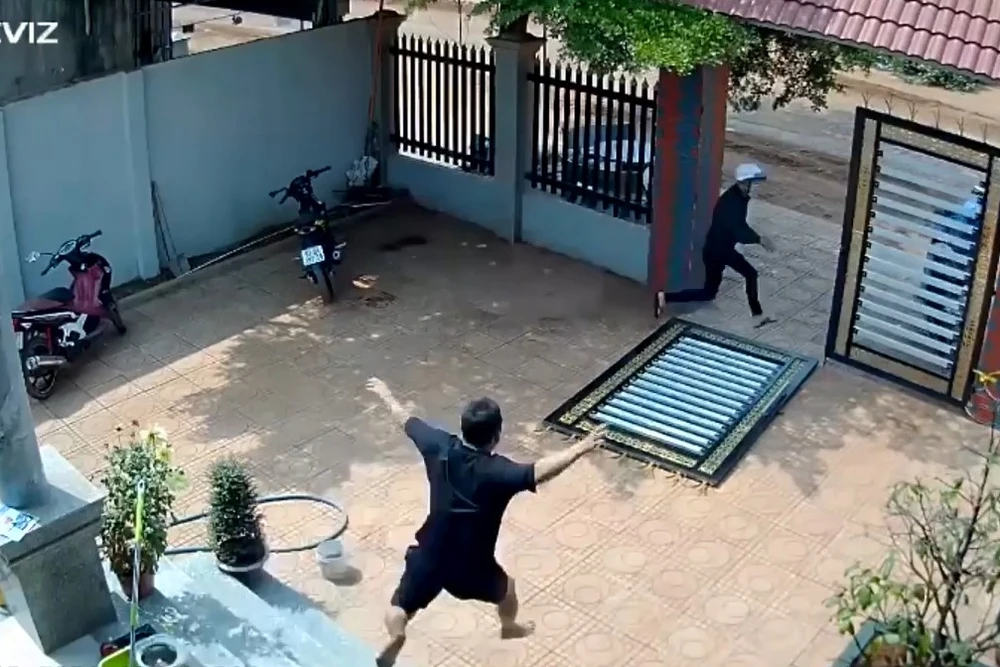 Anh S. lao ra bắt trộm. Ảnh: Cắt từ camera an ninh