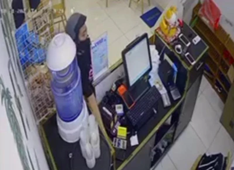 Camera an ninh tại cửa hàng ghi lại hình ảnh một phụ nữ "tiện tay lấy" điện thoại của nhân viên. Ảnh: NGUYỄN YÊN