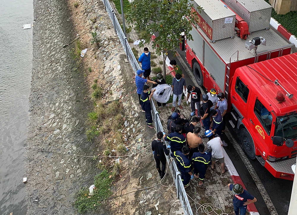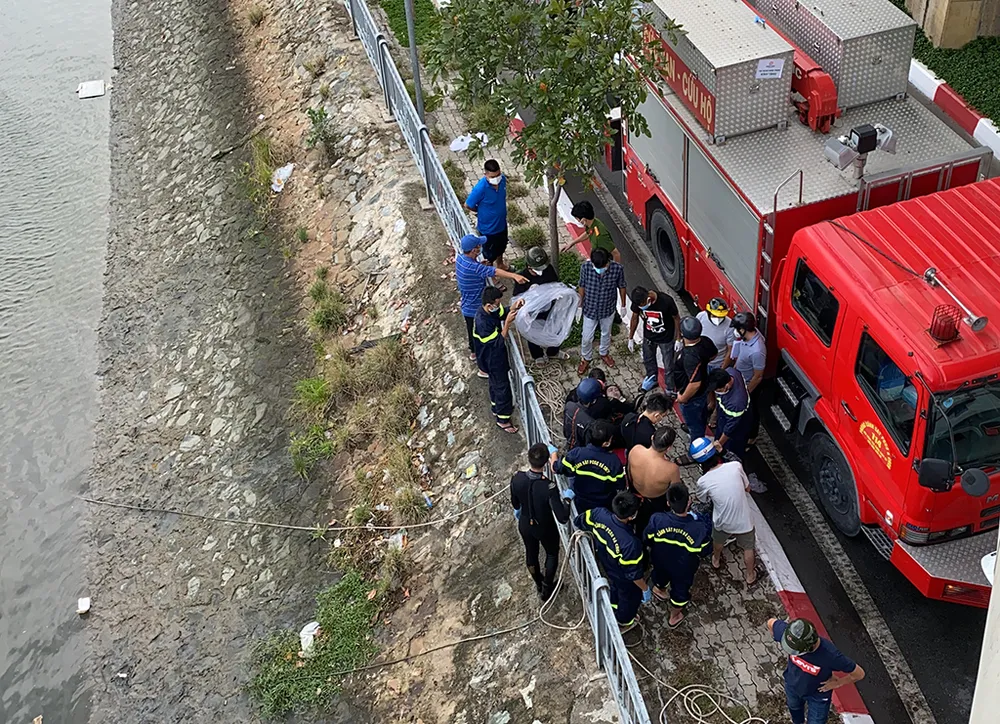 Sau đó, người phụ nữ được phát hiện leo qua lan can cầu rồi nhảy xuống kênh Bến Nghé. Do sự việc diễn biến quá nhanh, không ai kịp ngăn cản.