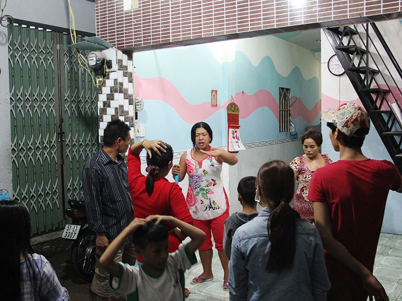 Người thân và hàng xóm vẫn chưa hết bàng hoàng sau vụ việc xảy ra. Ảnh Nguyễn Tân.