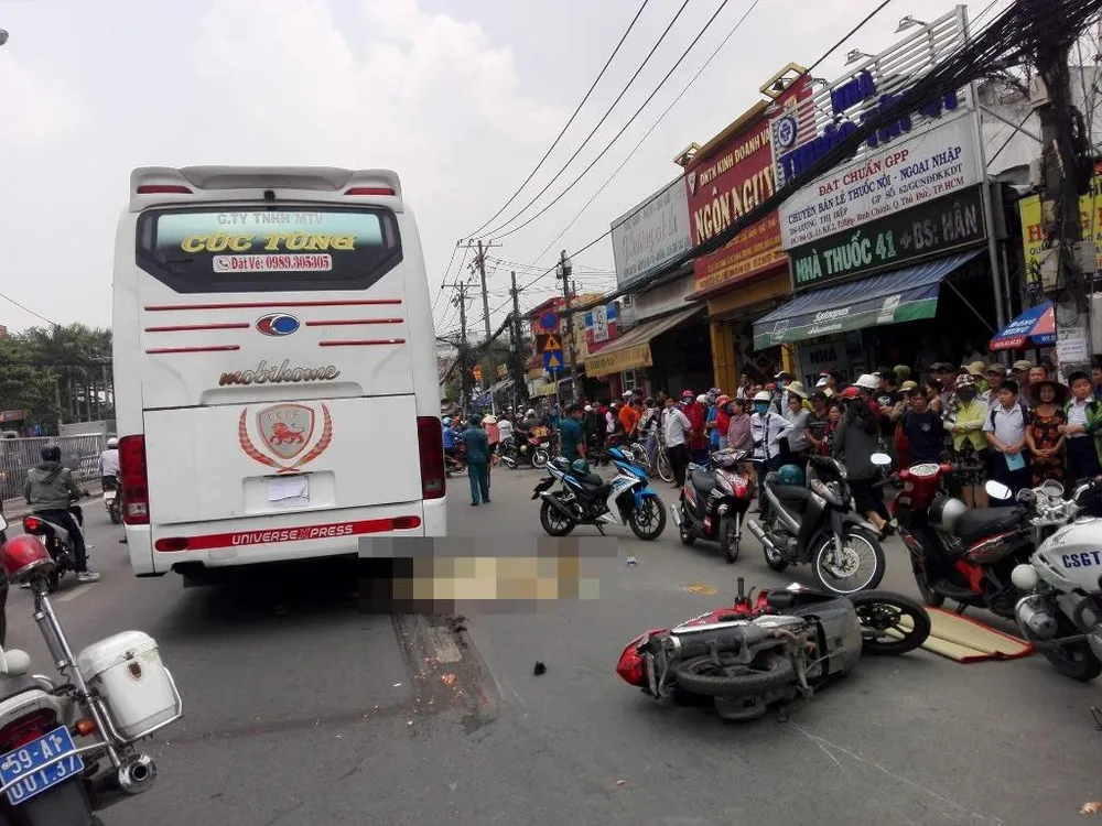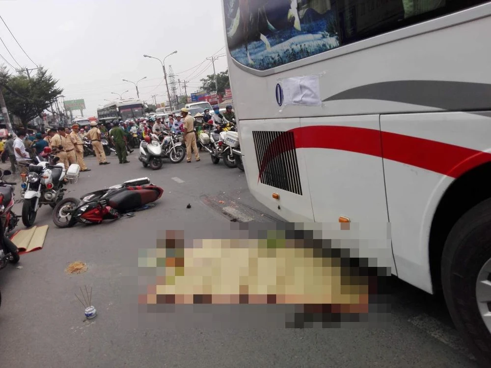 Vụ va chạm khiến người phụ nữ điều khiển xe máy ngã vào đầu xe khách và bị cán qua người tử vong tại chỗ.