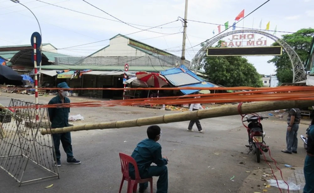 Cổng vào chợ đầu mối TP Vinh đã được phong tỏa.