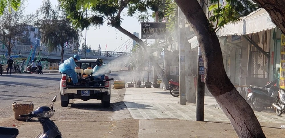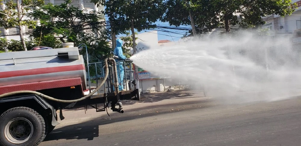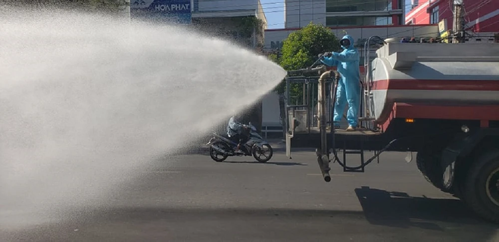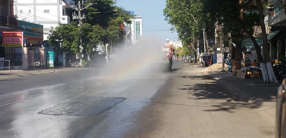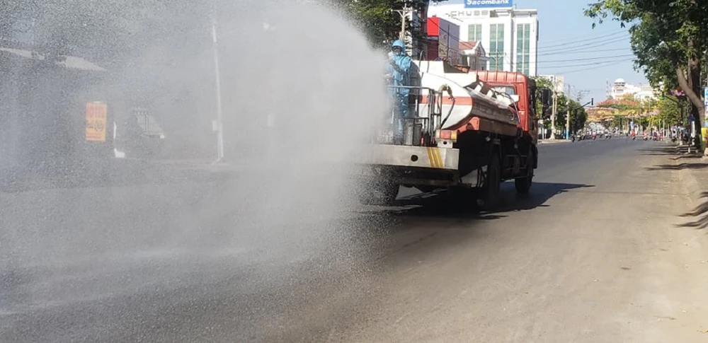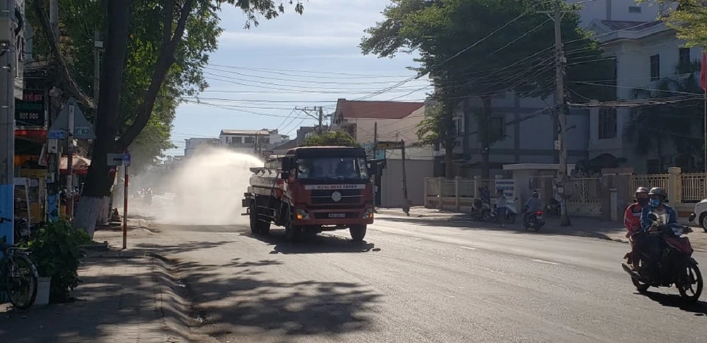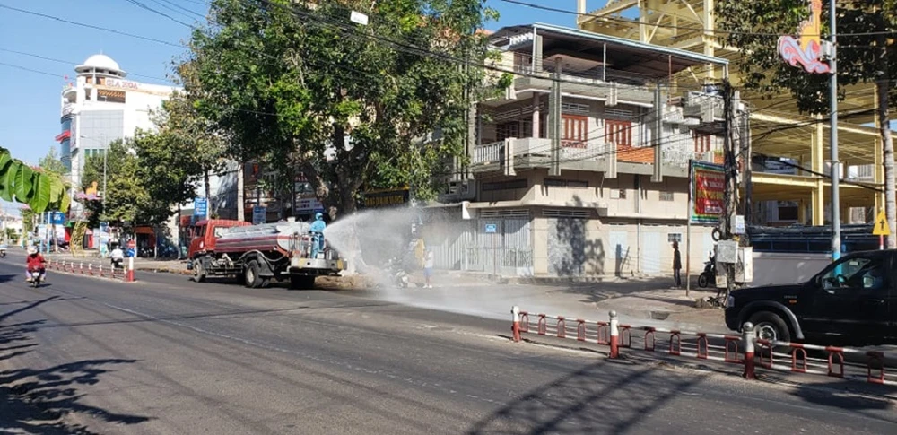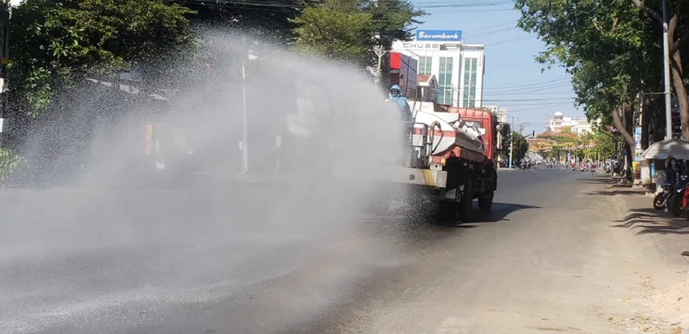 Các tuyến đường lớn như Trần Hưng Đạo, Trần Phú, Trưng Nhị... được tiến hành phun thuốc.