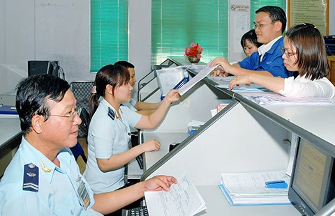 DN vẫn than phiền nhiều về thủ tục hải quan. Trong ảnh: DN đang làm thủ tục hải quan tại khu công nghiệp TP.HCM. Ảnh: HTD
