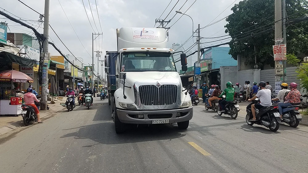 Khoảng 9 giờ sáng 21-7, xe container 51C-724.61 chạy trên quốc lộ 50 hướng TP.HCM đi Long An.