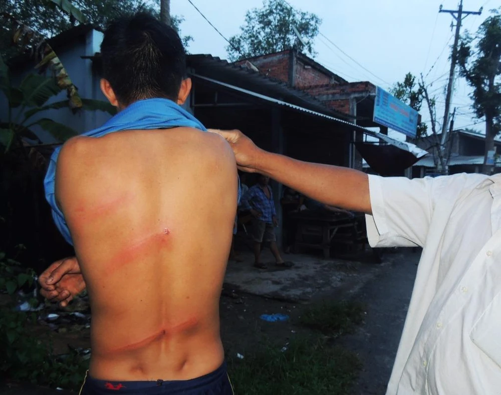 Anh Phan Hồng Phúc bị hành hung bằng gậy ba khúc.