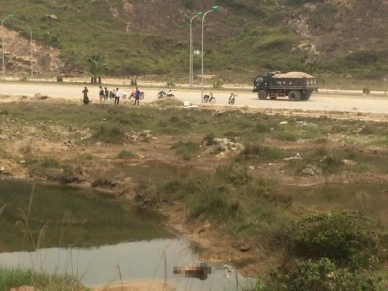 Một nhóm công nhân phát hiện xác nam thanh niên nổi trên đầm gần KCN TexHong Hải Hà, huyện Hải Hà, tỉnh Quảng Ninh vào lúc 10 giờ sáng nay, 27-3.