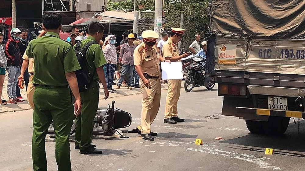 Đúng lúc đó, xe tải 61C-197.03 do nam tài xế chừng 35 tuổi điều khiển chạy tới không xử lý kịp đã cán trúng người anh C. khiến nạn nhân tử vong tại chỗ.