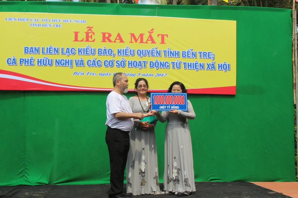 Cũng tại buổi ra mắt Ban liên lạc kiều bào, kiều quyến tỉnh Bến Tre, ban tổ chức nhận được tài trợ trên 600 triệu đồng cho các hoạt động như xây hai cây cầu tại xã Hưng Lễ (huyện Giồng Trôm); hai căn nhà tình thương tại huyện Châu Thành và Bình Đại; tặng 200 phần quà cho hộ nghèo ở xã Tam Phước (huyện Châu Thành) và 50 phần quà cho người mù tỉnh Bến Tre. Cùng với đó là tặng 21 suất học bổng cho học sinh nghèo vượt khó và tặng 4.000 quyển tập cho học sinh có hoàn cảnh khó khăn…