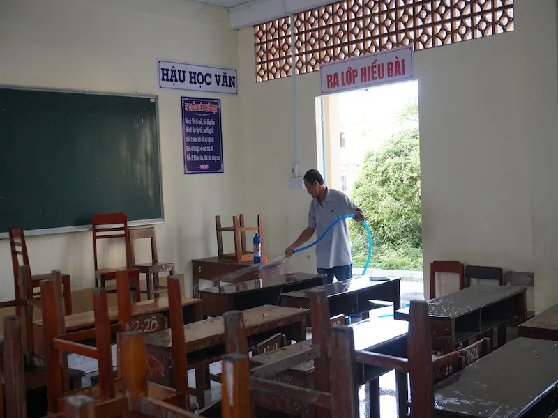 Vệ sinh lớp học phòng, chống dịch Corona. Ảnh minh họa: HẢI DƯƠNG