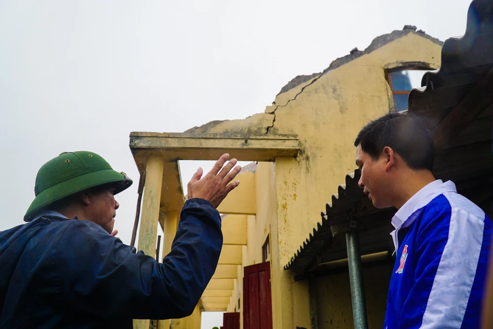 Trong sáng 16-11, cán bộ địa phương đã đi khảo sát những khu vực bị thiệt hại nặng tại địa bàn để đưa ra phương án hỗ trợ, cùng các giáo viên khắc phục những hậu qua do bão số 13 gây ra.