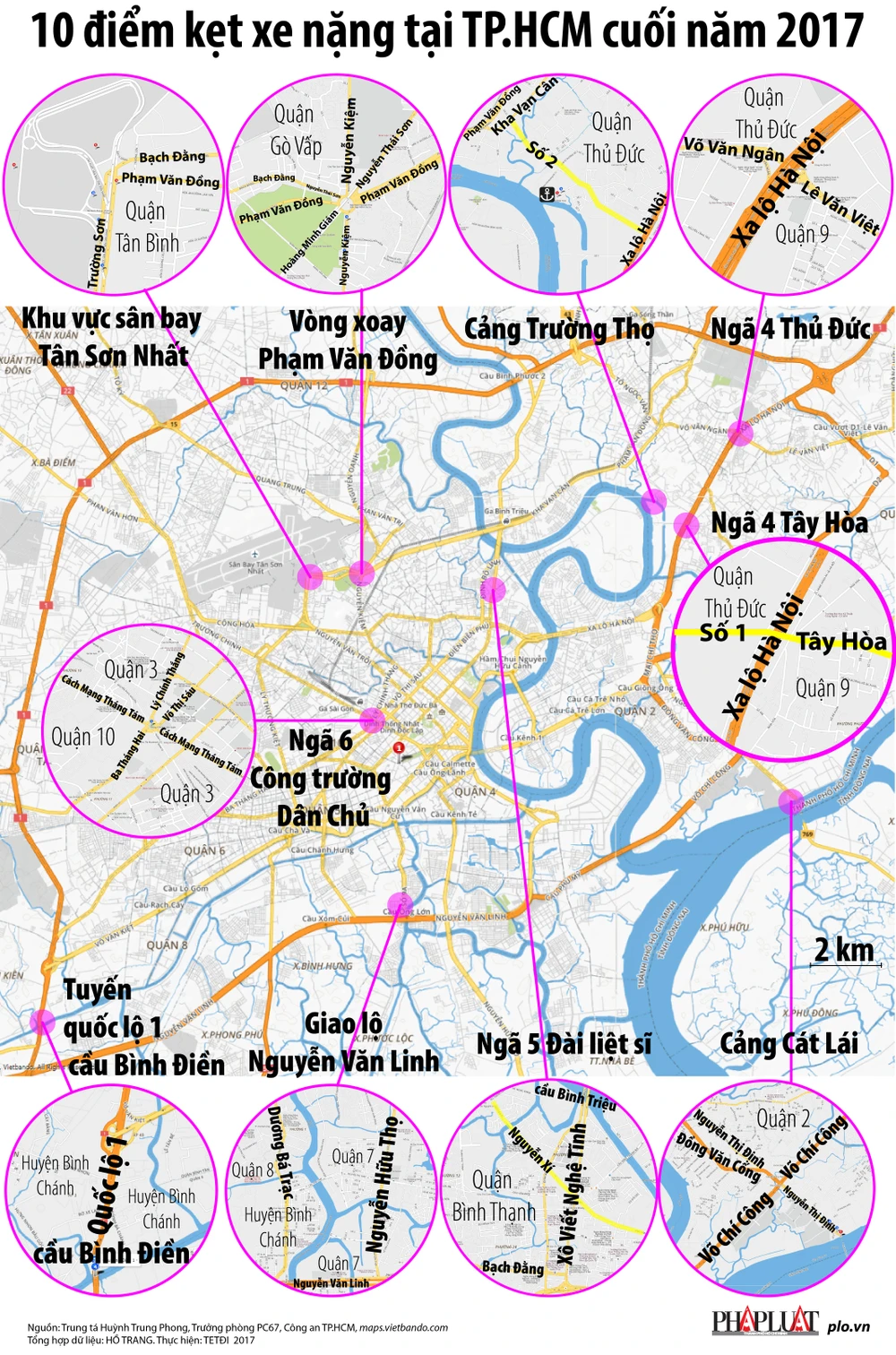 (PLO)- Tại Hội nghị giao ban công tác tổ chức giao thông mở rộng và giải quyết 10 khu vực phức tạp về giao thông trên địa bàn TP.HCM ngày 2-11, Trung tá Huỳnh Trung Phong, Trưởng phòng CSGT đường bộ-đường sắt (PC67) Công an TP.HCM, cho biết: TP có 10 khu vực trọng điểm phức tạp về giao thông sẽ được theo dõi chặt chẽ. Đơn vị sẽ lên phương án bố trí lực lượng để giải quyết ùn tắc trong những tháng cuối năm 2017.